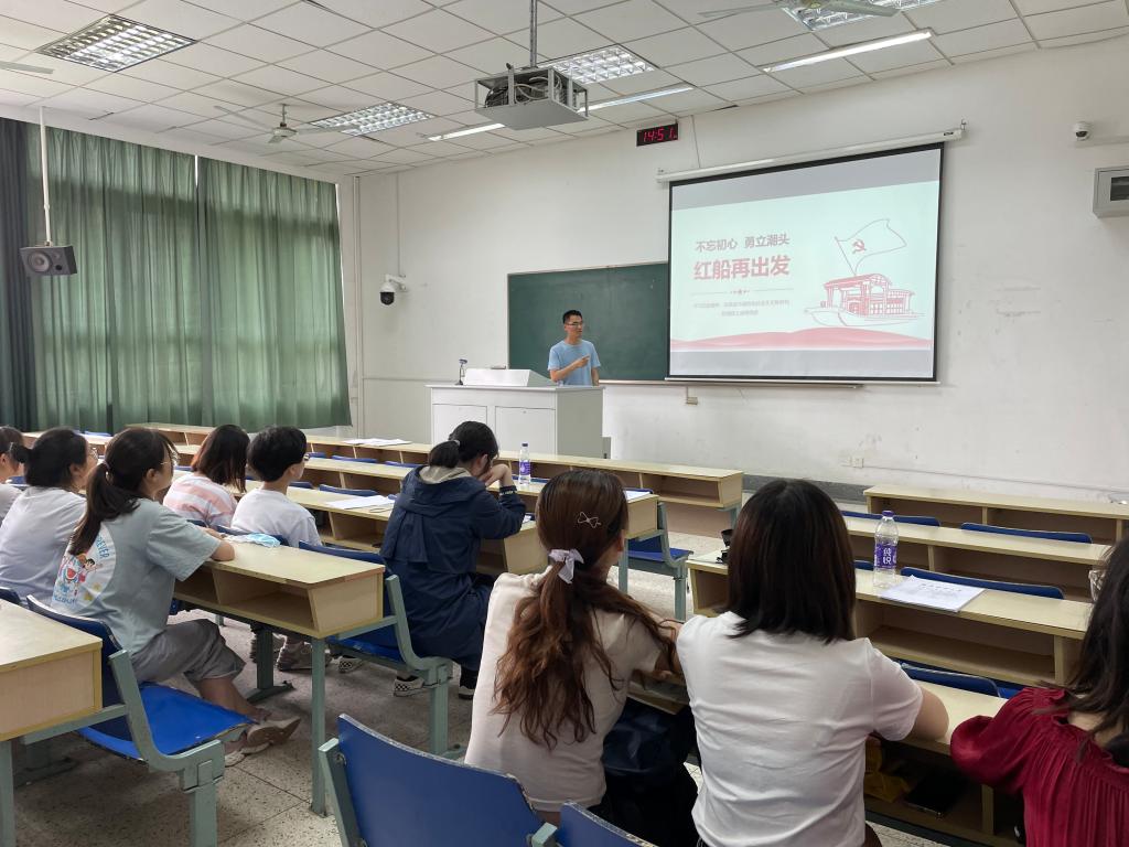 为实现“两个一百年”奋斗目标、中华民族伟大复兴的中国梦凝聚磅礴伟力,结合新时代的特点大力弘扬“红船精神”,让“红船精神”继续引领中国共产党人勠力同心。6月2日下午,公司本科生第二党支部在支部书记王连超老师的带领下,在Z2-104教室开展“不忘初心 勇立潮头 红船再出发”主题党日活动。本支部所有在公司党员同学参加了本次活动。