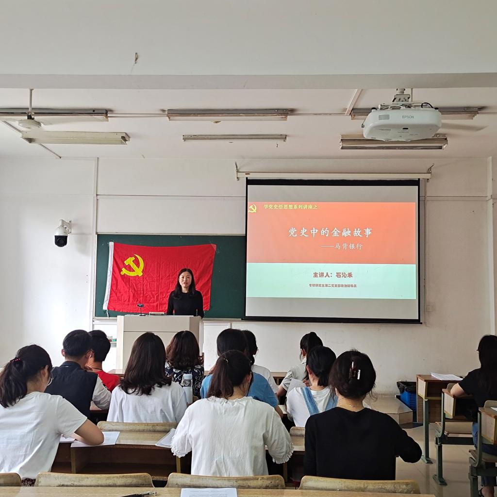 为了加强党史教育,激发党员们的党史学习热情,同时致敬中国杰出科学家袁隆平院士,5月27日下午,必一运动bsport体育专硕研究生第二党支部全体师生党员在博文楼210教室开展主题为《党史中的金融故事——马背银行》的党课活动,活动由政治辅导员石沁禾经理和党支部书记查腾飞老师主持。