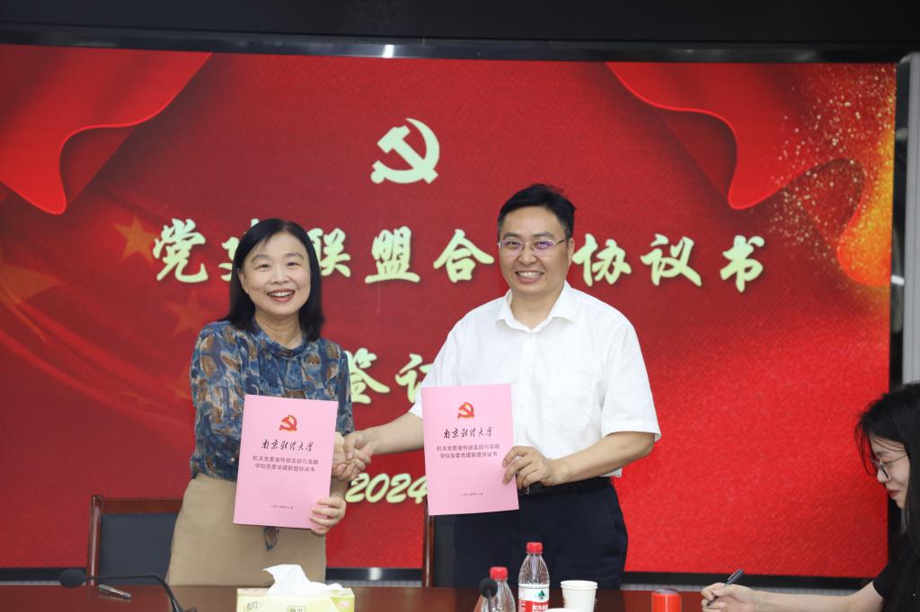 随后,双方签订了党建联盟合作协议。根据协议,党建联盟共建单位将通过政治理论联学、组织生活联过、特色品牌联创、人才招聘联拓、思政育人联做、人才工作联动、社会服务联办、考核工作联抓等多种合作方式实现合作共赢,以党建统领助推高水平财经大学建设。