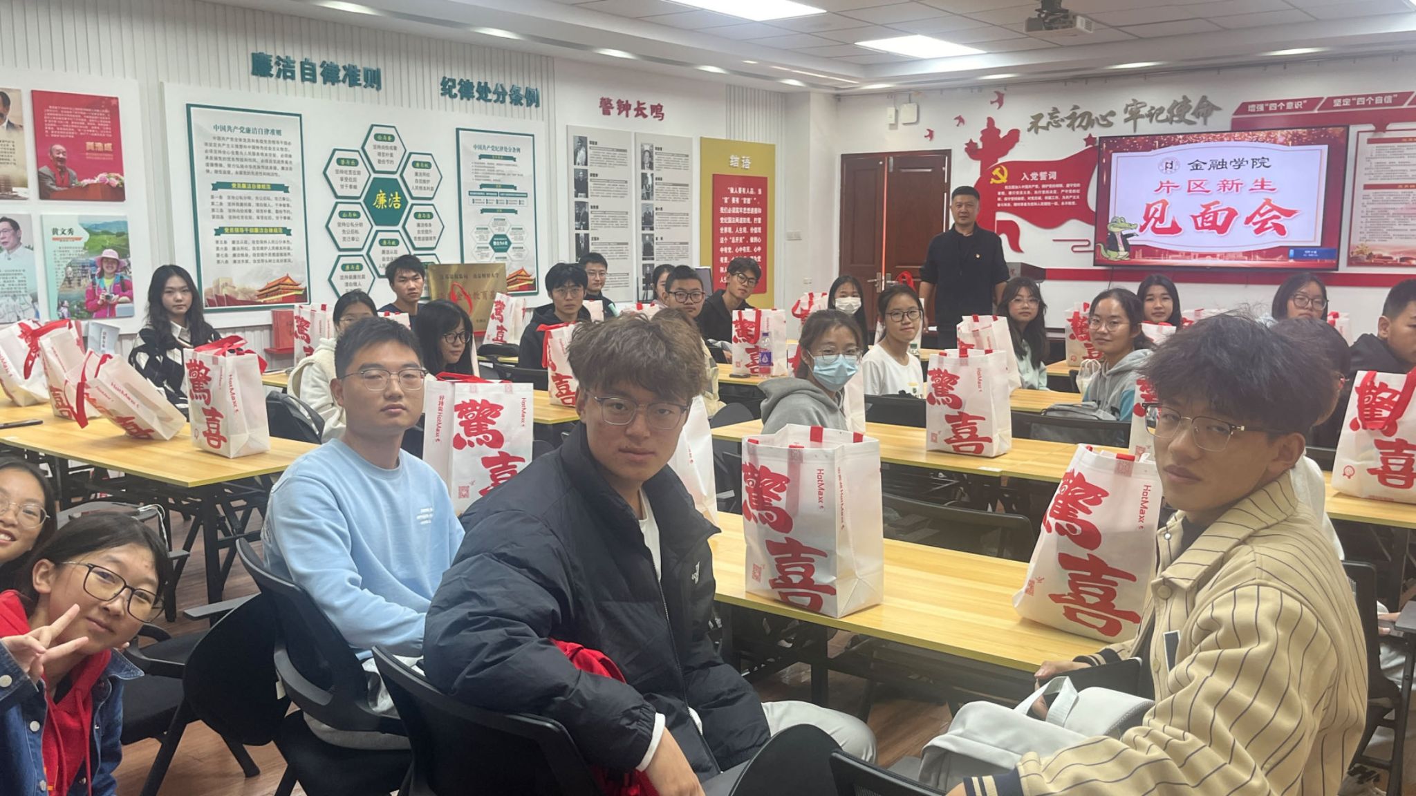 会议的最后环节,学工秘书黄炜老师针对新生们提出的关于学习、生活、活动参与等方面的问题,一一给予了耐心细致的解答。现场气氛热烈,新生们纷纷表示,这次见面会让他们对老员工活有了更加清晰的认识和规划,也让他们对未来的学习和生活充满了信心和期待。