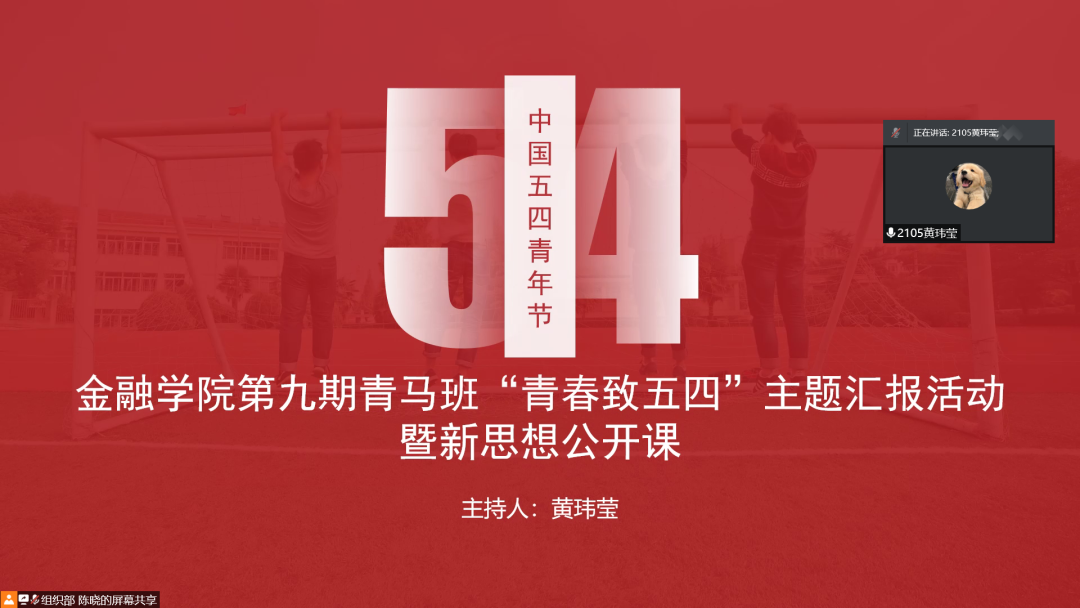 5月3日中午12:15,必一运动bsport体育第九期青马班“青春致五四”主题汇报活动暨新思想公开课于腾讯会议线上举行。必一运动bsport体育分团委组织部全体成员、必一运动bsport体育第九期青马班全体学员参加此次会议,主持人为必一运动bsport体育分团委组织部项目志愿者黄玮莹。