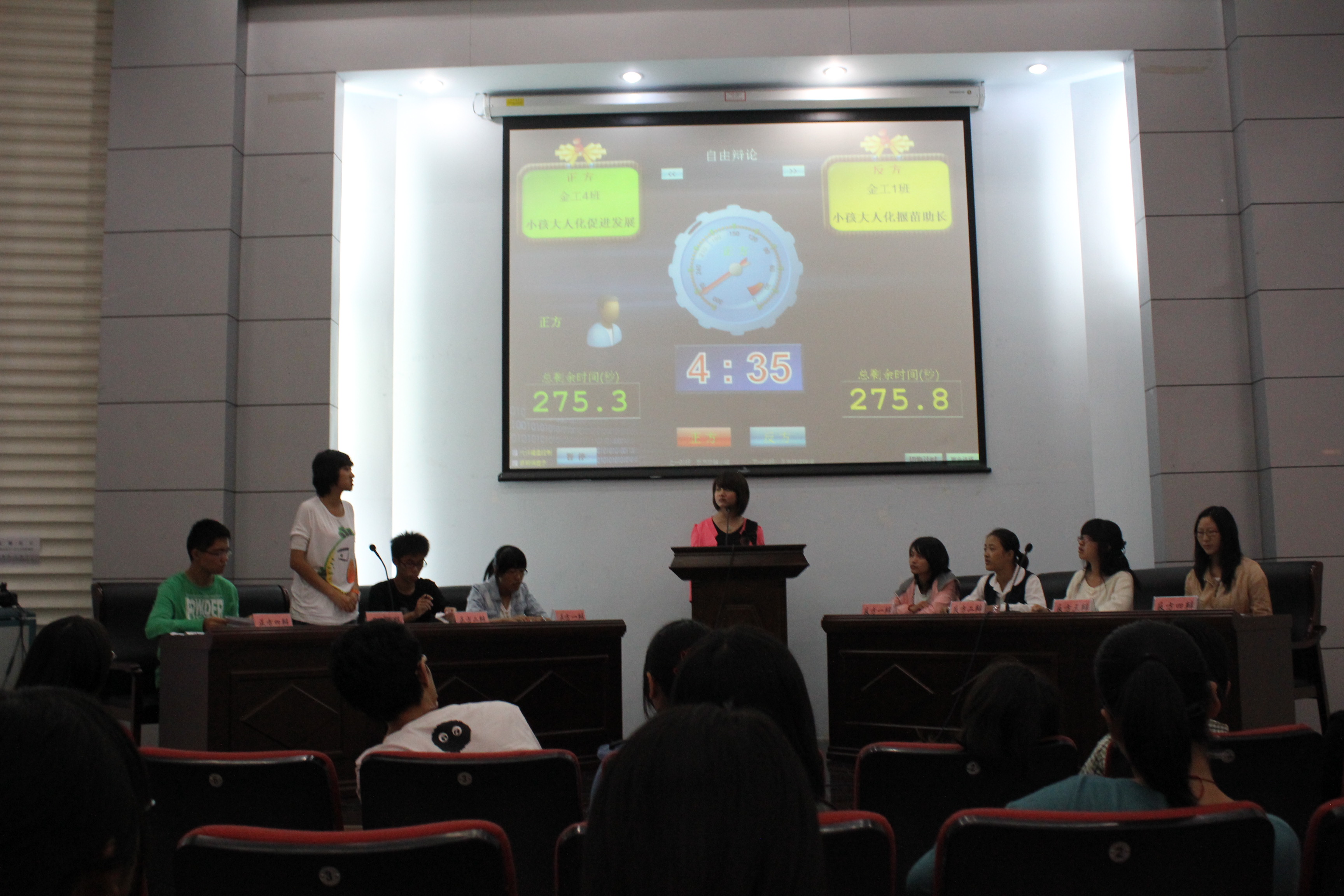 10月10日晚,由必一运动bsport体育员工联合会和必一运动bsport体育辩论队共同主办的2012年南财必一运动bsport体育第九届新生辩论赛复赛顺利进行。晚上,专一报告厅座无虚席,初赛胜出的金工1班和4班以及保险1班和2班在这里进行了精彩的角逐。金融辩队的主席及各优秀辩手和员工代表组成了此次的评审团。