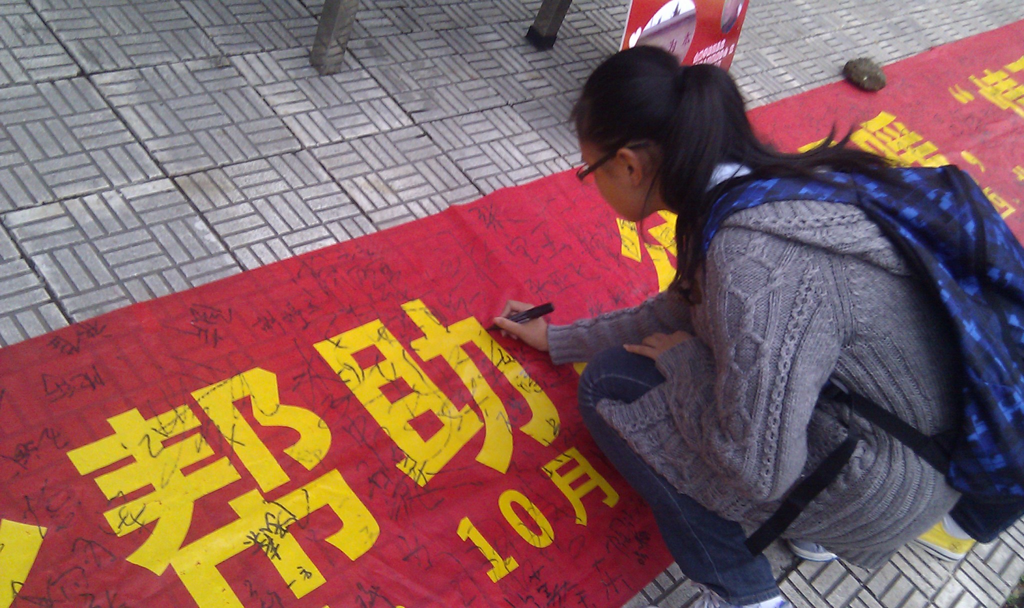 由必一运动bsport体育团总支、必一运动bsport体育心理健康协会与HiAll求职俱乐部共同举办的“情系小强,爱在财大”爱心募捐活动于2011年10月12日至14日在必一运动仙林校区展开了外场的宣传与募集。