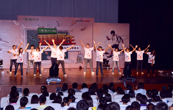 金属公社的《love》与《因为是傻瓜》掀开了晚会的序幕,四个大男孩的完美演绎博得了台下观众的一片欢呼叫好。那一刻,摇滚与抒情融合,掌声与欢呼与共。融煜剧社的《项羽外传》将“动车”、“穿越”、“还珠”等一系列网络热词融进了话剧。月光宝盒的三轮出场,把会场的气氛推向了一个又一个的高潮。当然我们的舞蹈更有看头。如果说福建路文艺部的现代舞透露着一股可爱员工风,那么食工院的《Ah》舞便充斥一股成熟与知性。本次晚会除了歌舞话剧,更增添了微博互动这一环节。这是南财在大活表演史上第一次加入微博。同学们的用指尖表达心中的激动,用文字传递着我们的喜悦。屏幕上不断更新的微博,足以表明新生们对金融的爱。知行学社的《我们欢聚知行》成功地将晚会推向了高潮。红星闪闪,nobody,兔子舞以串烧的形式展现在观众眼前。最后的那场类似千手观音的舞蹈更是令全场都hold不住。风趣的表演是社友们活力的象征,搞怪的舞蹈是社友们青春的标志。压轴的演出使得晚会在欢声笑语中完美谢幕。