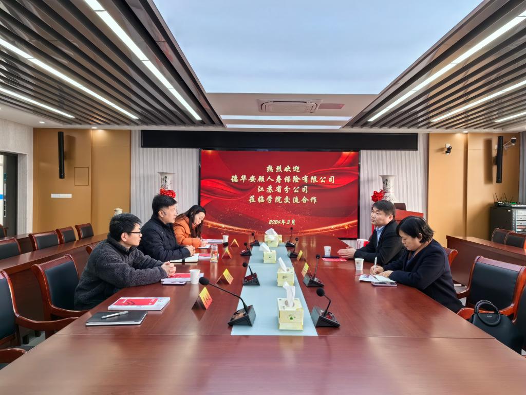 3月6日,德华安顾人寿保险有限公司江苏省分公司培训部总经理周昊先生、南京中支总经理盛秀芹女士来必一运动bsport体育走访交流,公司党委副书记张士青、食工公司教授朱恩俊、必一运动bsport体育学工办主任黄炜、党院办副主任冒林波参与交流座谈。