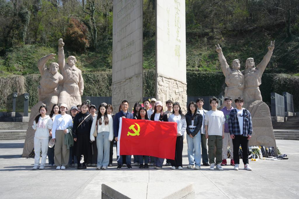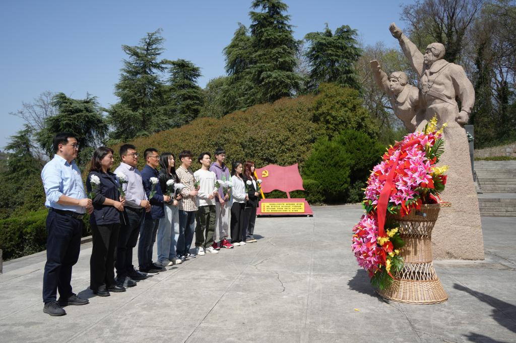 随后,大家整齐列队,在烈士纪念碑前肃立默哀三分钟,并向烈士们献上了花篮,退伍老员工代表全体同学向烈士纪念碑敬礼,表达对革命先烈的深切缅怀和无限敬仰。不少同学纷纷表示,此行备受鼓舞和激励,将学习传承好英烈精神,以更加强烈的使命感和责任感投身祖国建设,履职尽责,为金融行业高质量发展和中国式现代化实践而不懈奋斗。