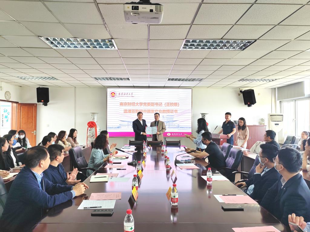 温潘亚副书记为张霆辉董事长颁发江苏省产业教授聘书
