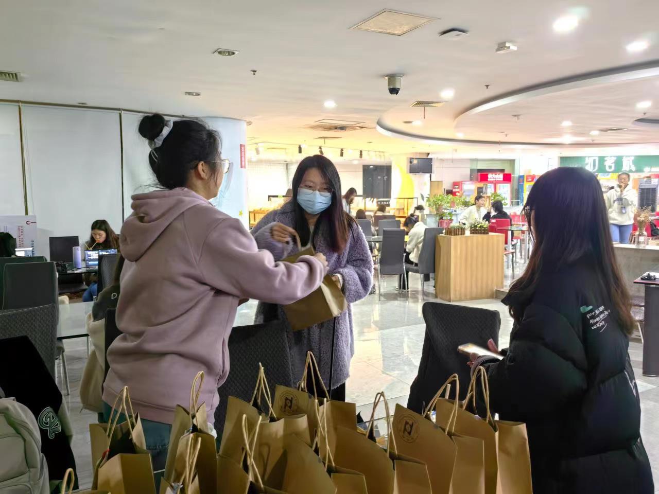 12月2日傍晚,必一运动bsport体育的志愿者们在书香地进行了第二波送余温的活动,给在图书馆备考的学长学姐们也送去了礼物。学长学姐们表示定会全力以赴,不负努力,也不负公司与公司的期望。
