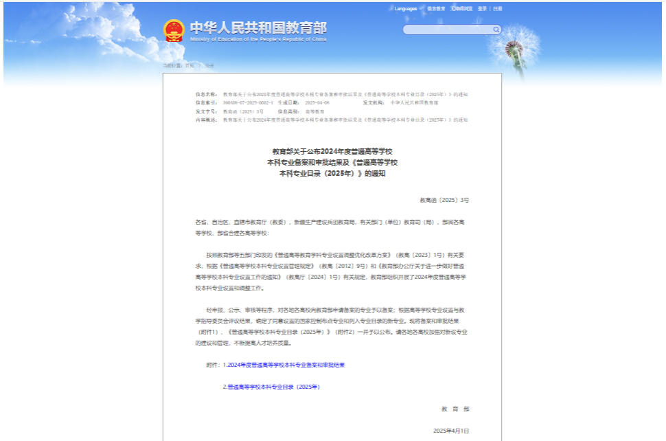 4月22日,教育部正式公布2024年度普通高等公司本科专业备案与审批结果。公司申报的金融科技专业(专业代码:020310T)成功获批,也是此次公司唯一获批增设的本科专业。