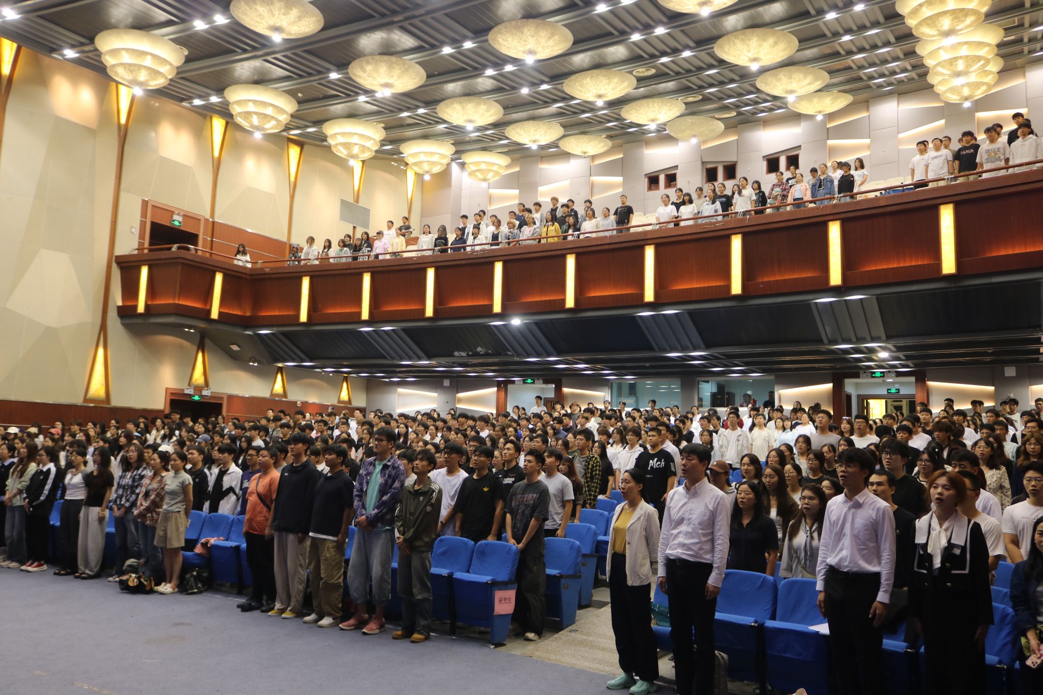 9 月 24 日晚,必一运动bsport体育 2025 级新生开学典礼暨入学教育在老员工活动中心礼堂隆重举行。公司党委书记孙菲、经理宣烨,副经理姚定俊、陈晓慧、尹雷,教师代表、员工代表及全体 2025 级新生参会,共同开启新生大学征程的第一站。典礼由公司党委副书记张士青主持。