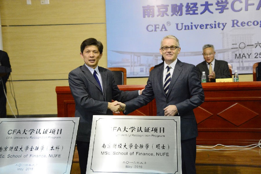 CFA 是“特许金融分析师”的简称,它是全球投资业里最为严格与高含金量的资格认证,由美国的 CFA 协会设立。 CFA持证人通常就职于各类银行、证券、基金、期货、保险等机构。由于两类人才的稀缺性,北京、上海、广州、深圳、南京等国内诸多城市均为他们制定了住房补助、人才津贴等优惠政策。。《金融时报》杂志于2006年将CFA专业资格比喻成投资专才的“黄金标准”。英国国家认证信息中心认为FRM认证相当于美英澳加等国的硕士学位水平。CFA证书为我国人力资源和社会保障部批准的国家职业资格证书。2016年3月底,南财大金融学本科及硕士专业同时顺利通过了美国CFA协会审核,成为江苏省首个CFA大学认证项目,也是迄今为止省内唯一同时获得金融学本科、硕士双认证的高校;2017年6月再次升级,首批加入 CFA 协会 University Affiliation Program(大学联盟)。