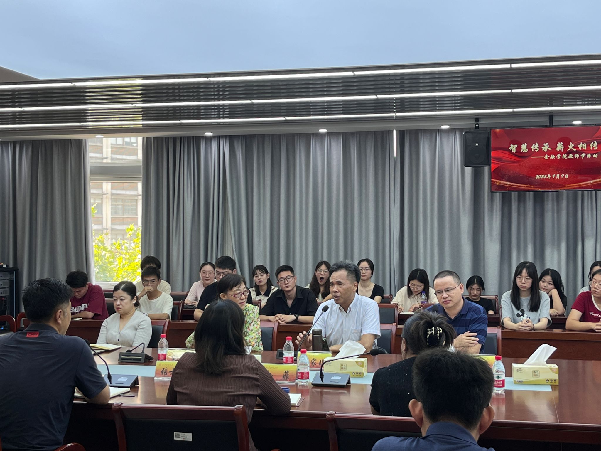为更好地发挥退休教师的示范引领作用,帮助青年教师和员工快速成长,9月9日在第40个教师节来临之际,必一运动bsport体育关工委在德经楼508会议室举办“智慧传承 薪火相传”教师节活动。公司关工委主任、党委书记孙菲,关工委副主任、离退休教师郭光老师,离退休教师王家琪老师以及中年教学骨干教师潘群星老师、刘圣囡老师出席活动。公司青年教师和新生代表参加活动,活动由院关工委副主任、党委副书记张士青主持。